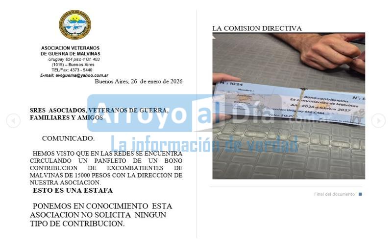 Denuncian a falsos gestores con bonos contribución para ayudar a los veteranos.