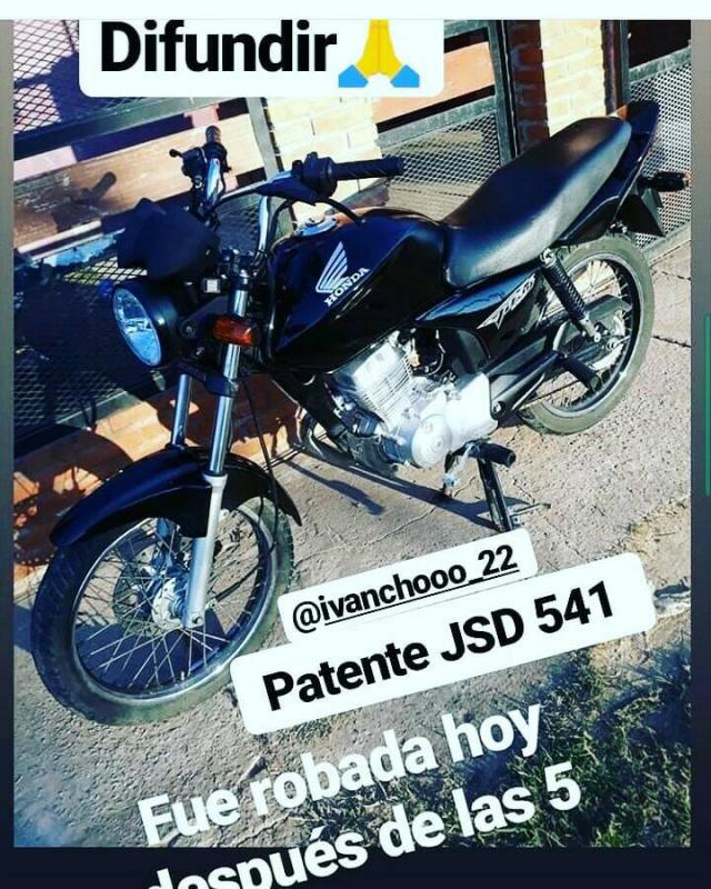 Cerca de las 18 de ayer, sobre calle Col贸n entre Rivadavia y Moreno, se produjo el robo de una moto marca Honda, modelo Tit谩n, de color negro, dominio 541 JSD, N潞 de motorKC08E2D709132, N潞 de cuadro 8CHKC082ODP026469.