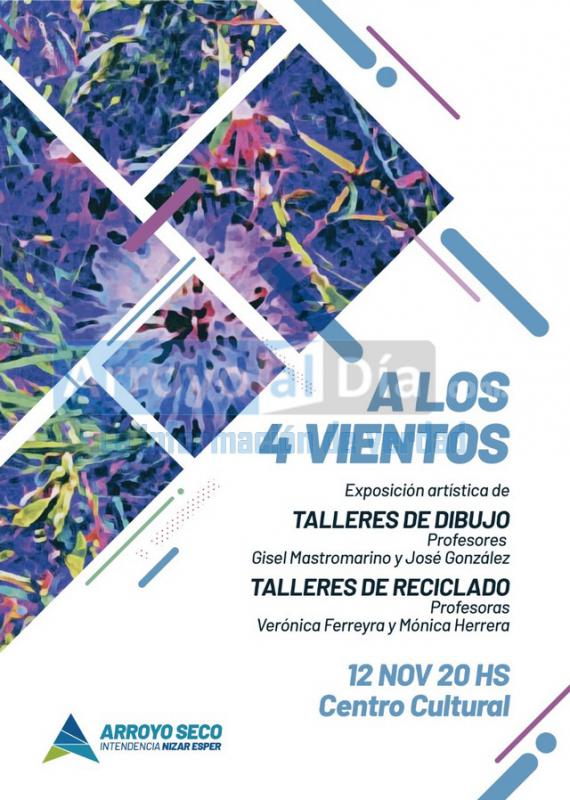 Bajo el nombre de "A los 4 vientos", podremos disfrutar de una gran exposición artística a cargo de los talleres de Dibujo de los profesores Gisel Mastromarino y José González, y de los talleres de Reciclado de las docentes Verónica Ferreyra y Mónica Herrera.