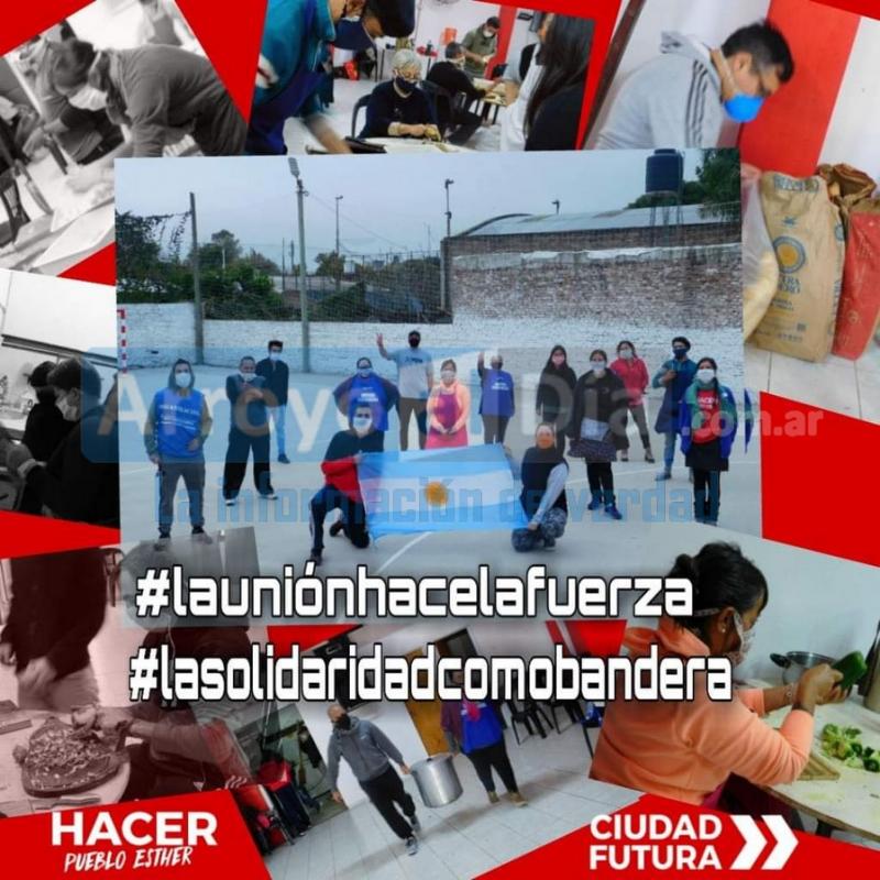 La flamante ciudad de Pueblo Esther está siendo minada de gestos solidarios. Las ONG's, las distintas agrupaciones políticas, los solidarios anónimos, familias y grupos que perteneces a escuelas o cultos religiosos están dando que hablar. Cada día, turnándose, van llevando la comida o la copa de leche a cientos de personas que necesitan su apoyo.