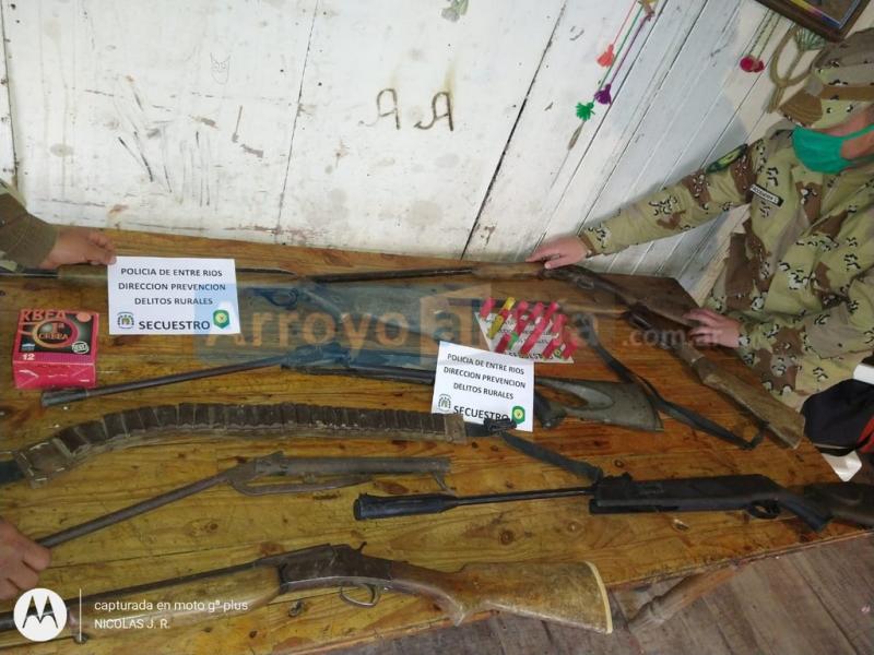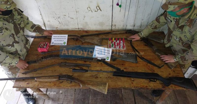 Ya contando los uniformados con el Oficio Judicial acceden a una vivienda ubicada en Islas Victoria, dónde secuestran gran cantidad de armas y cartucheria, siendo estás: Un (01) arma de fuego calibre 22, Un (01) arma de fuego calibre 12, Un (01) arma de fuego calibre 20, Un (01) arma de fuego calibre 16, Tres (03) arma calibre 5.5; Catorce (14) Cartuchos calibre 12, Un (01) cartucho calibre 20, Dos (02) vainas servidas calibre 16 y 20, quedando dos (02) masculinos supeditados a la causa que se investiga por amenazas calificadas.