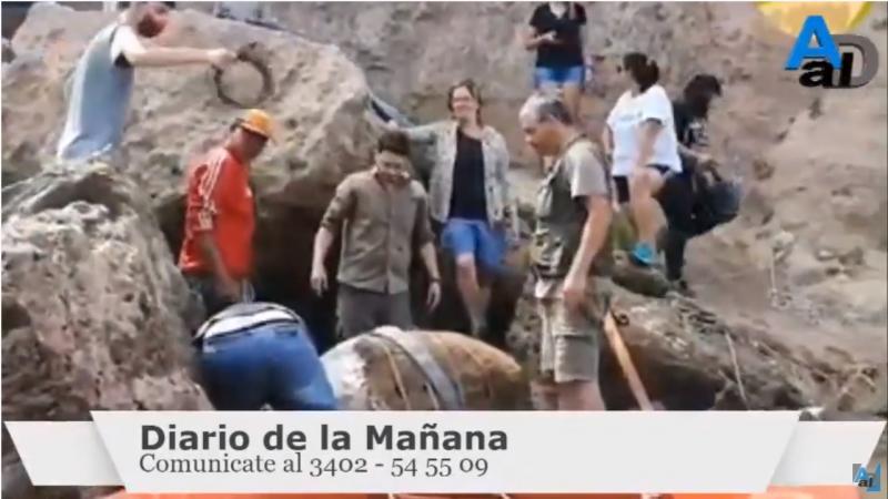El subdirector de Patrimonio Arqueológico y Paleontológico del Ministerio de Innovación y Cultura, Luciano Rey, dialogó con Diario de la Mañana y brindó algunos detalles del hallazgo y los trabajos que realizaron para poder recuperarlo: "La semana pasada nos avisaron unos pescadores, que en un lugar muy complicado del Arroyo Pavón, habían encontrado restos fósiles. Sólo se podía llegar por el agua en canoa, a pie era imposible.