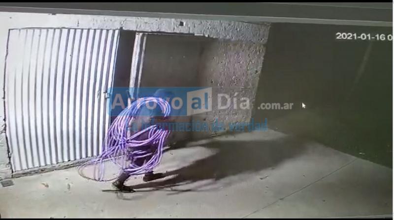 El delincuente forzó la traba del galpón, que no tenía conectada la alarma y se llevó, luego de unos tres minutos, el cable que encontró en el lugar.