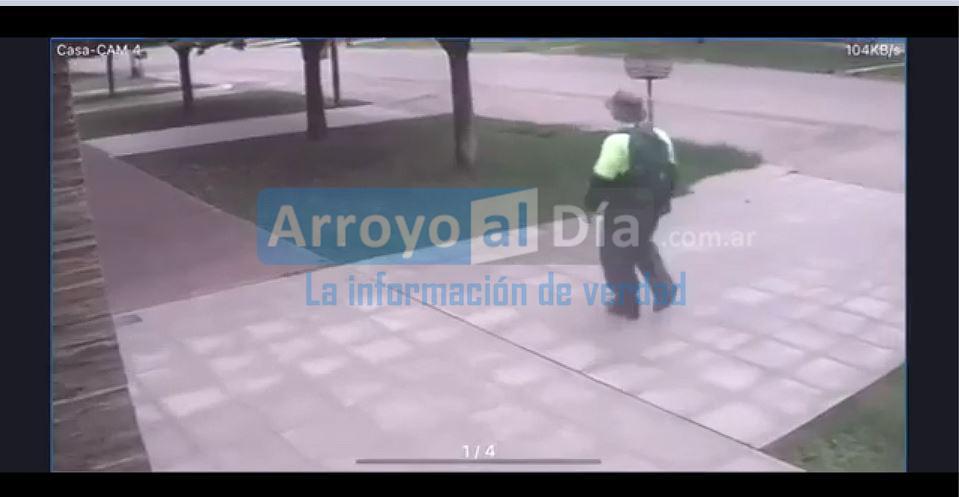 Al final no se llevó nada porque se le cae todo cuando intenta salir corriendo y sólo queda agradecer que no le pasó nada grave. No se pudo identificar todavía aunque se ve en el vídeo la ropa que llevaba. Fuimos por las calles cercanas, como se fue corriendo hacia Baigorria y se metió en el barrio que está después de las vías. El Comando se metió por San Martín al fondo pero no vio nada.