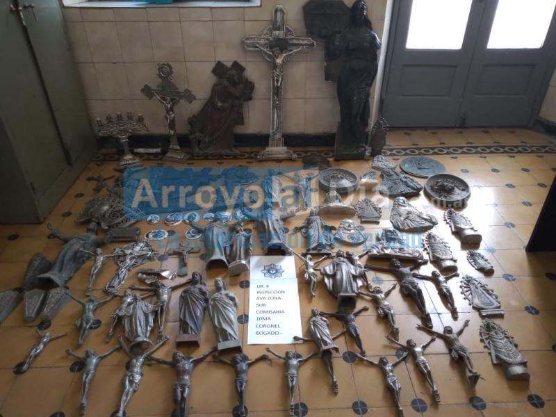 El trabajo conjunto entre la AIC de Villa Constitución, Seccional 27ª de Arroyo Seco, Seccional Sub 7ª de Albarellos, GOT y CRE de Villa Constitución, comandado por el Inspector de Zona Jorge Quiróz, dio como resultado la aprehensión de R.P.O. de 44 años y un automóvil Fiat Uno en calle Carbonell, placas de bronce, crucifijos, floreros y otros elementos sustraídos en cementerios en el domicilio de calle Luzuriaga al 1200, donde también se secuestró un chasis de Renault Traffic con pedido de secuestro activo por robo desde el 19/01/20, denuncia de esa misma jurisdicción. Luego se produjo la detención de F.J.M. de 31 años en calle Perrisol, éste último por encubrimiento, mientras que en el domicilio de calle Rivarola los resultados fueron negativos.