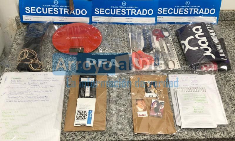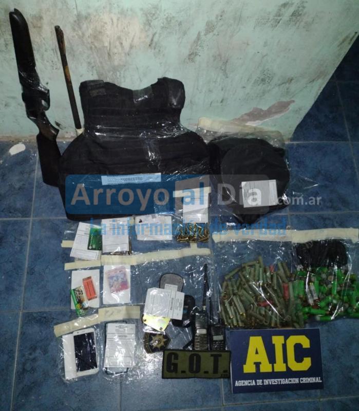 Se secuestraron una escopeta calibre 16, una carabina, múltiple material estupefacientes, una balanza de precisión, Chaleco balístico, dos handies de frecuencia policial y múltiple material balístico, seis teléfonos celulares, más de 1000 dosis de clorohidrato de cocaína, aproximadamente $ 50.000 pesos y 20.000 dólares, una pistola Beretta 635 con municiones, una pistola Glock 26 con cargador, municiones y motocicleta con número de motor suprimido.