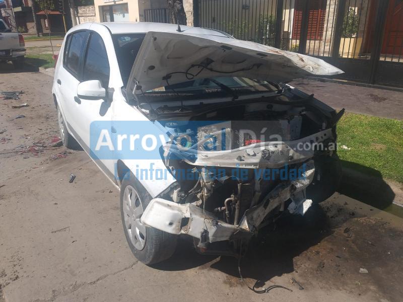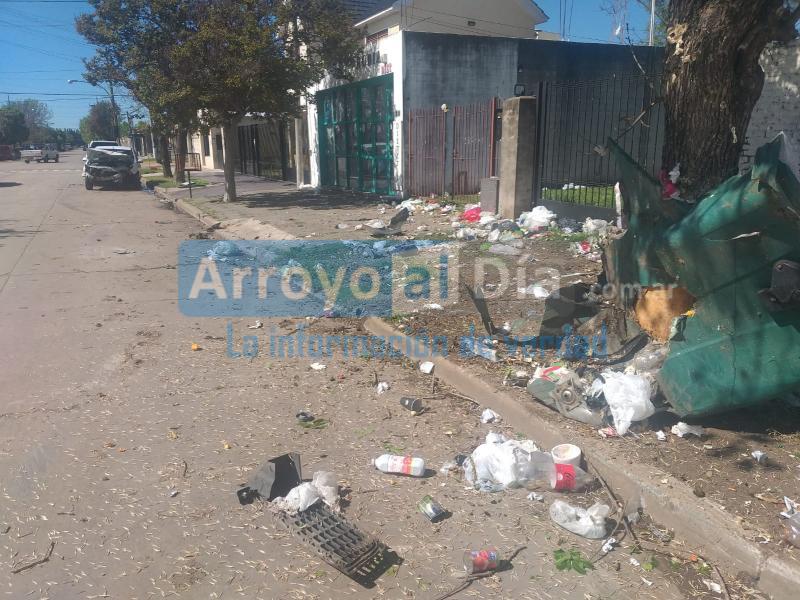 Un violento accidente ocurrió en la madrugada de este domingo 3 de octubre. Aproximadamente a las 4.30 el conductor de un Renault Sandero de color blanco, por causas que se desconocen, perdió el control del vehículo, se llevó por delante un contenedor de basura que está a mitad de cuadra en calle Belgrano entre Humberto Primo y Colón, lo aplastó contra un árbol, siguió su carrera para dar contra la parte trasera de una camioneta Toyota Hilux y terminar en el sentido inverso en el que se dirigía.