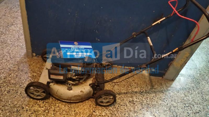 Según consta en el parte policial, en momentos en que un móvil se encontraba patrullando por calle 9 de julio antes de llegar a calle Garrahan, observaron dos masculinos que al ver la unidad se dan a la fuga, ingresando a un terreno de una vivienda en construcción. Por tal motivo descendieron los agentes del orden de la unidad, ingresaron al terreno y allí observaron una máquina de cortar el césped y una bicicleta todo terreno, como así también a dos masculinos saltando un tapial ingresando a las viviendas de la cuadra.