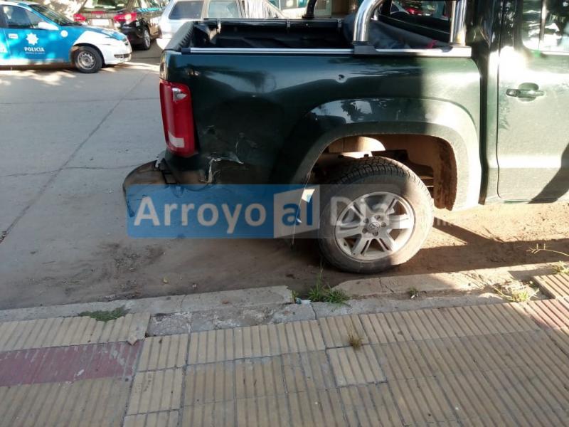 No se establecen las causas del siniestro aún, pero los dos vehÃculos se encontraban en la dependencia policial labrando las actuaciones. Una moto Gilera gris con un impacto en la rueda delantera y una pick up Amarok con un impacto en su guardabarros trasero derecho. A pesar de que en ese lugar existe un semáforo activo y una cámara de seguridad no se conocÃan las causas de la cinemática del choque.