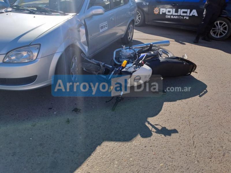 En la mañana de hoy se registró un choque entre una moto y un automóvil en la intersección de calles San Martín y General López. El rodado menor circulaba en dirección sur norte por la primera de las arterias y el vehículo de alquiler desde el este hacia el oeste por General López.