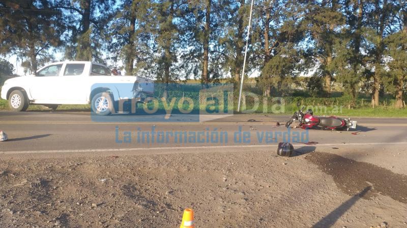 El accidente se produjo entre una camioneta y una moto. La policía y empleados de tránsito trabajaron en el sitio.