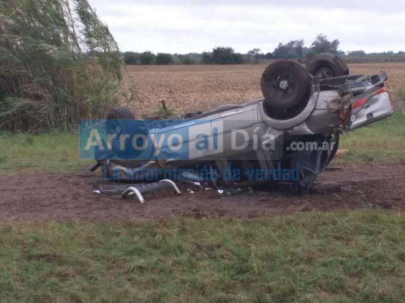 Volcó una camioneta que quedó apoyada sobre su techo.