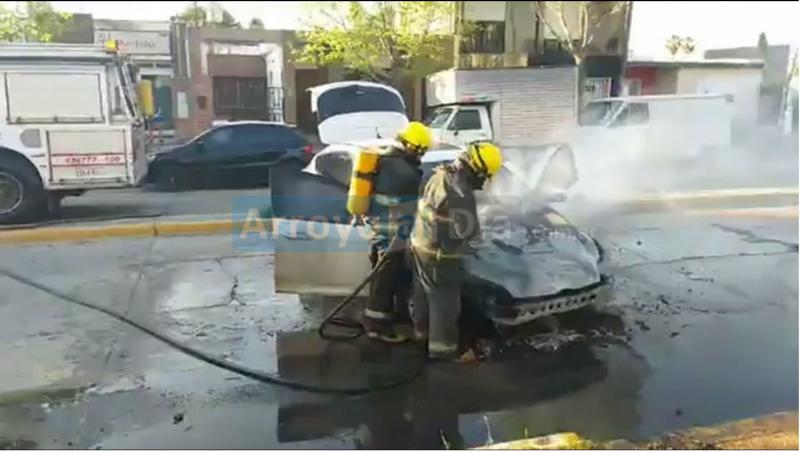 Cuando voluntarios arribaron al lugar el auto se encontraba cruzado en la calzada y con un fuego enfocado en su parte delantera