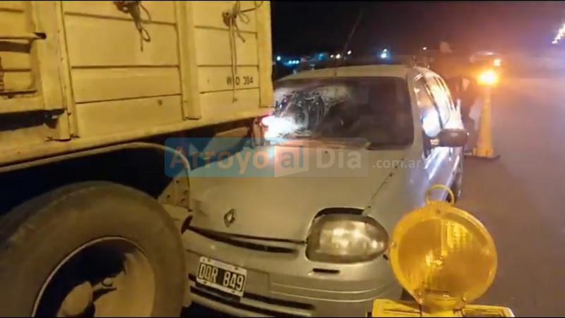 Un automóvil Peugeot 206 se incrustó contra un camión en la entrada del puerto local. Hay un herido.