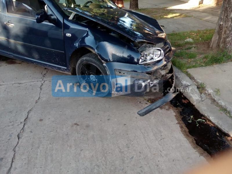 Un vehículo se encontraba siniestrado y su conductor argumentaba que otro en contramano lo obligó a reaccionar chocando contra el cantero de la vereda.