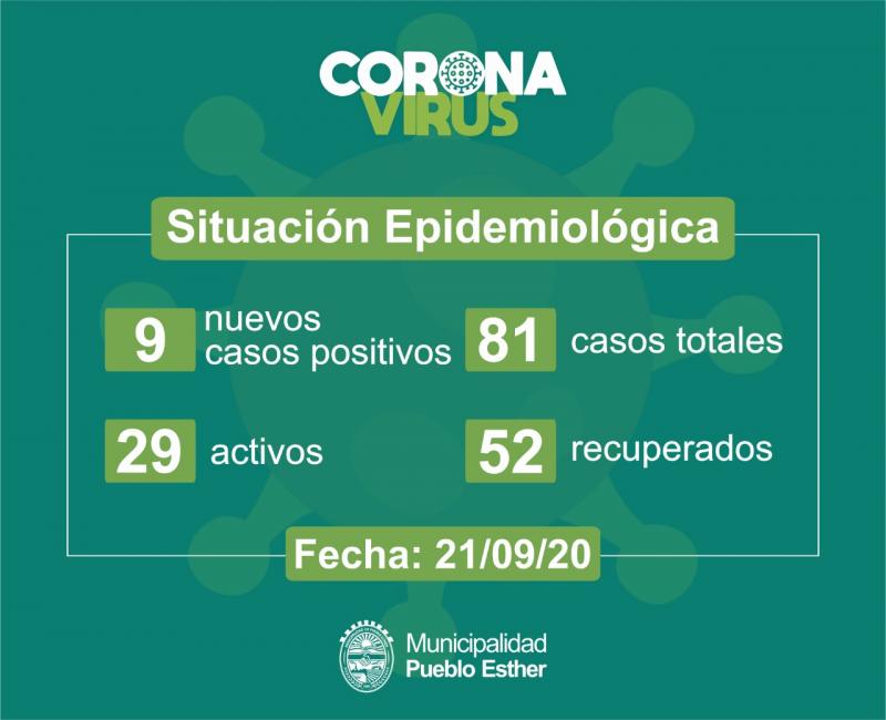 En las últimas 48 hs confirmamos 9 nuevos casos por hisopado positivo y dos personas dadas de alta que ya superaron el COVID-19 en la localidad de Pueblo Esther.