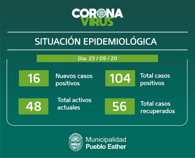 En el dÃa de hoy confirmamos 16 nuevos casos por hisopado positivo y 2 personas dadas de alta que ya superaron el COVID-19 en la localidad de Pueblo Esther.