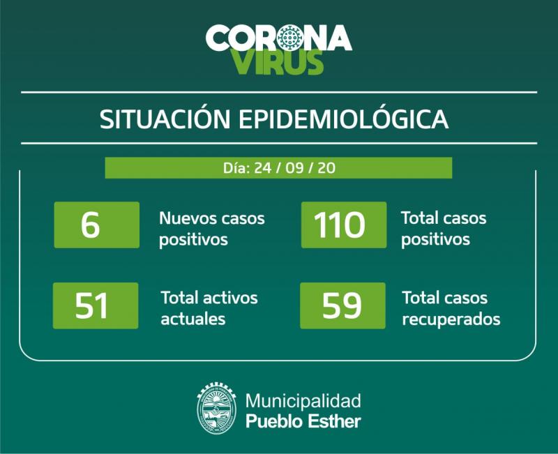 En el dÃa de hoy confirmamos 6 nuevos casos por hisopado positivo y 3 personas dadas de alta que ya superaron el COVID-19 en la localidad de Pueblo Esther.