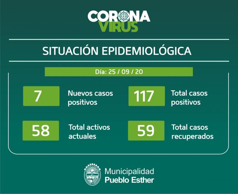 En el dÃa de hoy confirmamos 7 nuevos casos por hisopado positivo y dos personas dadas de alta que ya superaron el COVID-19 en la localidad de Pueblo Esther.