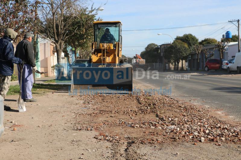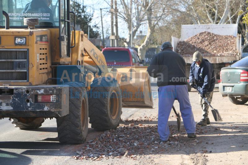 Primeramente, mediante la utilización de escombros, cuadrillas de empleados se abocan a efectuar arreglos sobre las banquinas de la ruta provincial desde "El Cristo" hacia la intersección con calle Gaboto en lo que comprende al acceso sur.