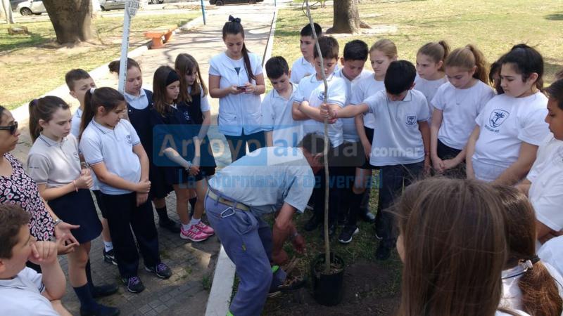 Gracias al aporte donativo de la Municipalidad, los niños y niñas plantaron un Lapacho Colorado ante la ayuda de la Ingeniera Agrónoma Renata Luna y de empleados abocados al sector, fomentando a su vez el aprendizaje y adquiriendo información sobre esta temática que será trabajada luego en el aula.