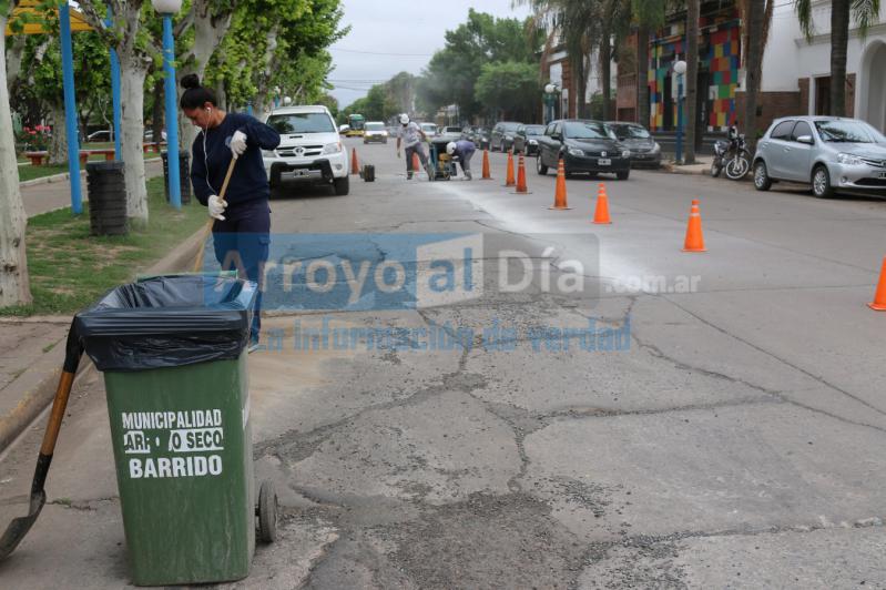En tanto, otro grupo de trabajadoras dependientes de esta área, se apostaban en las inmediaciones efectuando el barrido correspondiente, rutinario a lo largo y ancho de la localidad.