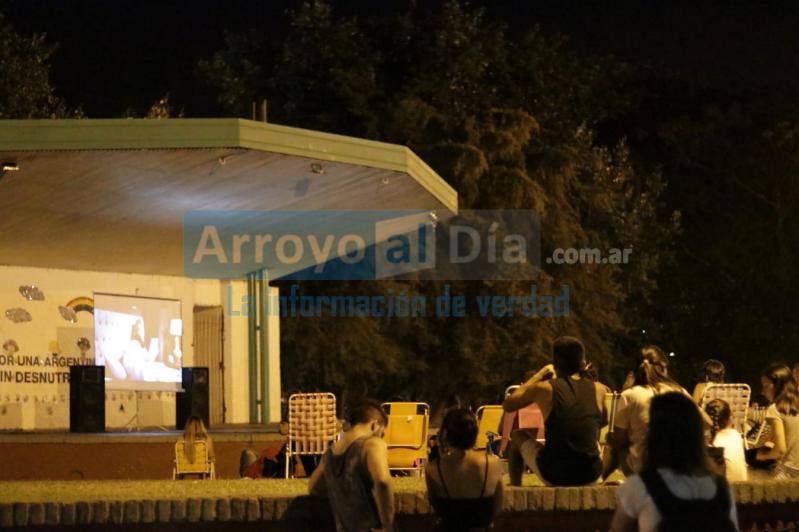 En el Anfiteatro Municipal, varios vecinos y vecinas se acercaron para ver la película "Mamá se fue de viaje", asistiendo con sus reposeras bajo el entretenimiento del "film" en una hermosa noche para estar a la luz de las estrellas.