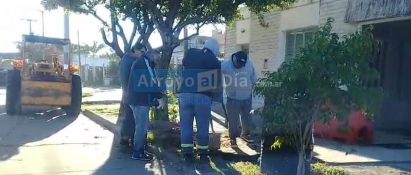 Puntualmente, cuadrillas accionaban sobre cinco "pozos negros" que se abrieron luego de los 120 milímetros de agua caídos en las últimas lluvias. Por ende, se reparaba el sector con tareas de albañilería, tapando y rellenando, subsanando así el problema.