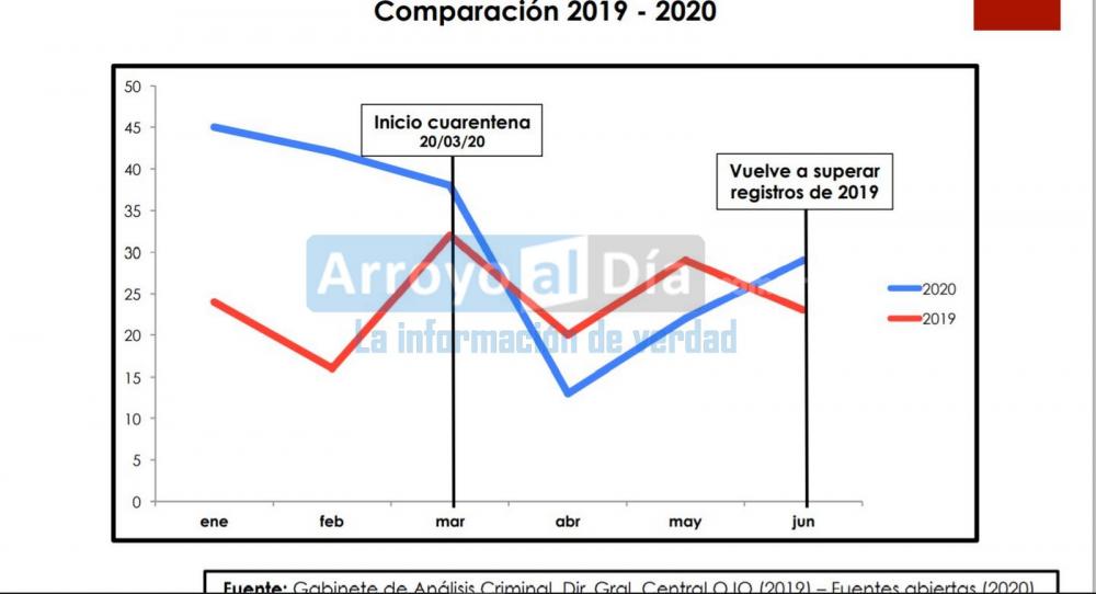 Informe sobre homicidios 2020 - 1er semestre - lo más destacable está dado por el hecho de que por primera vez, luego del ASPO, el registro mensual supera el de los años anteriores "Junio 2020 fue el más alto de los últimos 4 años"