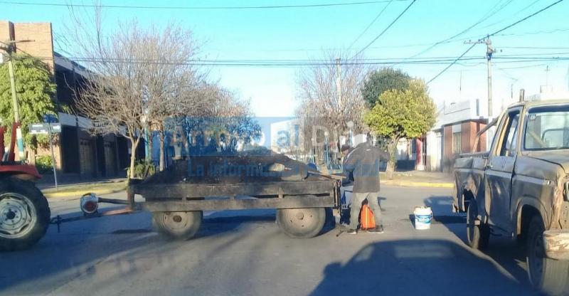 Bajo este fin, cuadrillas ejecutan tareas de bacheo sobre calle Juan B. Justo, cómo así también desarrollan mejoramientos en el barrio El Ombú, donde se efectúa con motoniveladora y disco el abovedamiento del camino.