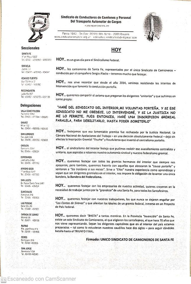 Desde 2014 el Sindicato de Conductores de Camiones y Personal del Transporte de Cargas viene dando pelea para que sea el único que tenga la provincia. Desde Buenos Aires, se intentó un sindicato paralelo que desestimara esa posibilidad, queriendo o pretendiendo que un sistema unitario manejara a todos los afiliados.