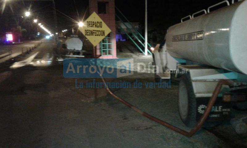personal de la Secretaría de Obras y Servicios Públicos, realiza diariamente la desinfección de las calles en los vecindarios con la utilización del regador, como así también en nuestros accesos, en este caso destinada a los vehículos que ingresan a la ciudad.