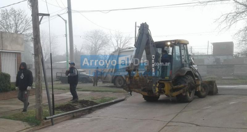 En esta oportunidad, cuadrillas abocadas a tal fin, colocaban postes de alumbrado público para la disposición de sistema led sobre calle Sargento Cabral, entre 1° de mayo y San Martín.