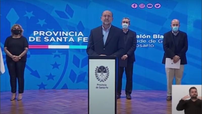 “Tenemos que volver a controlar los contagios. Sé que es difícil", agregó el mandatario junto al intendente Pablo Javkin en la conferencia que comenzó a las 20.25 en Rosario.