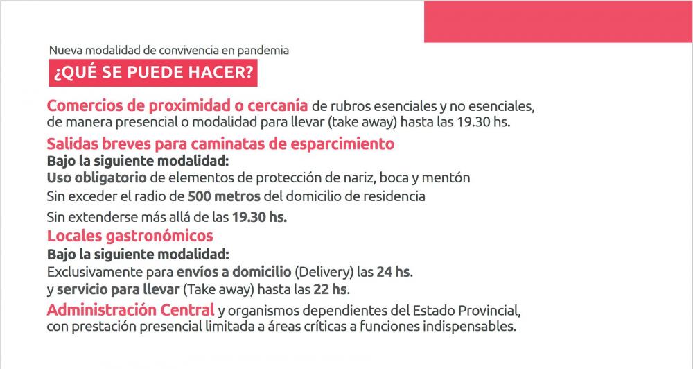 EL gobierno de la provincia de Santa Fe dispuso, por intermedio de su gobernador y el Ministerio de Salud, extender por una semana la postura de estos últimos 15 días, por lo que algunas actividades seguirán su curso normal como hasta hoy y otras tendrán las mismas restricciones.
