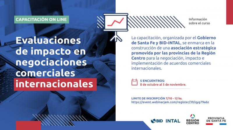 Convoca a participar de la capacitación online: “Introducción a la realización de evaluaciones de impacto en negociaciones comerciales internacionales”, una acción conjunta entre el INTAL- BID (@Banco Interamericano de Desarrollo) y las Secretarías de Gestión Federal y de Cooperación Internacional de la provincia.