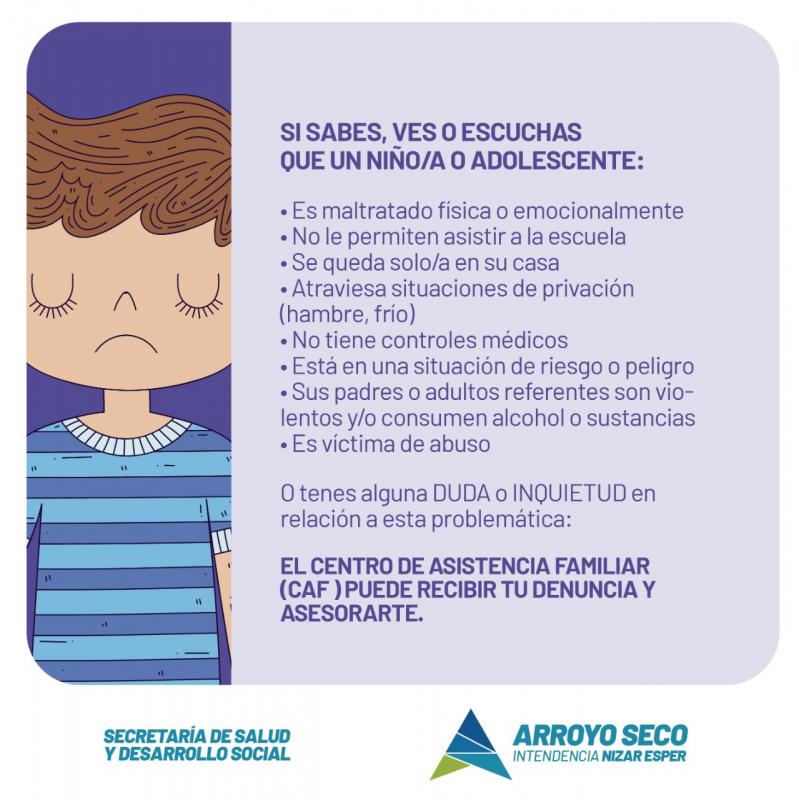 O tenes alguna duda o inquietud en relación a esta problemática, el Centro de Asistencia Familiar (CAF) puede recibir tu denuncia y asesorarte