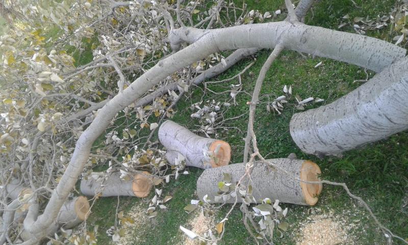 Personal de la Secretaría de Obras y Servicios Públicos, dependiente de la Municipalidad de Arroyo Seco, efectúa trabajos en espacios determinados dónde se divisó la caída de árboles debido a los fuertes vientos.