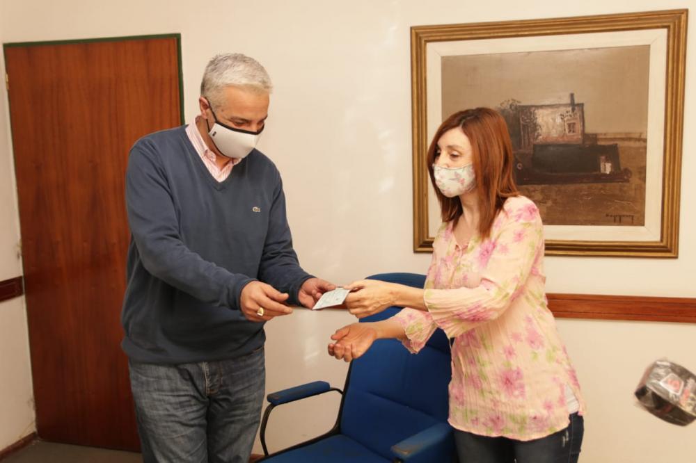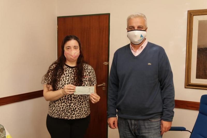 En el encuentro desarrollado en la sala Posta de San Martín del Palacio Municipal, directivos de las entidades recibieron el aporte por $300.000 para cada escuela, haciendo un total de $4.800.000 en la jornada de hoy.