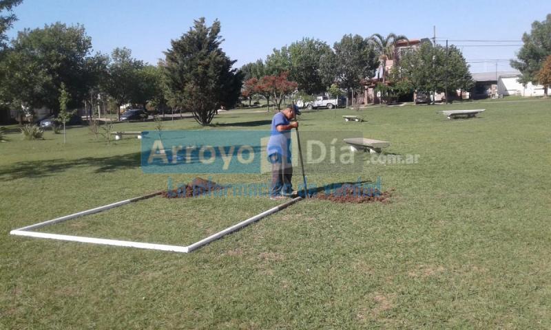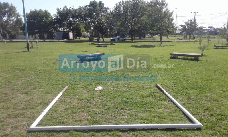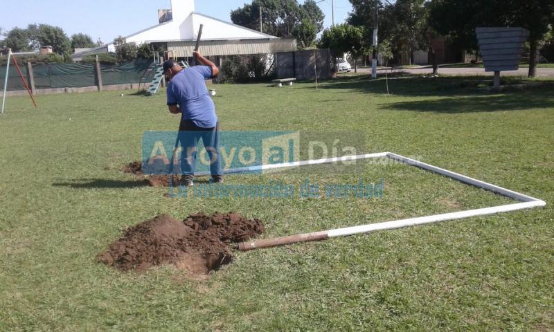 En la plaza del vecindario, se están colocando los arcos tras la intervención en pintura, para la generación de un sector destinado al divertimento y distensión de los vecinos. Además, en el lugar se procederá a cambiar de lugar bancos y juegos para mayor seguridad de las personas que utilicen dicha cancha.