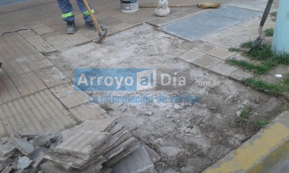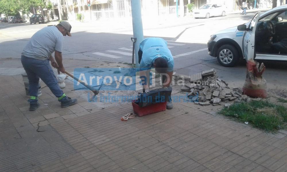 También personal municipal trabajando sobre distintos puntos de la ciudad en arreglos de veredas.