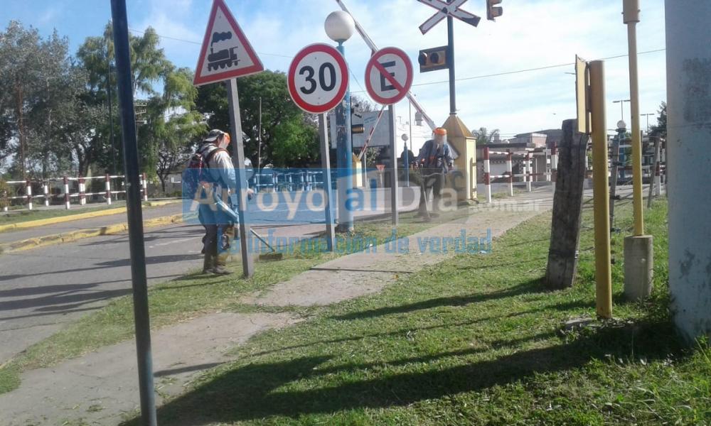 Cuadrillas de Personal Municipal realizando cortes sobre Barrio Asunción y otra sobre las vías del ferrocarril.