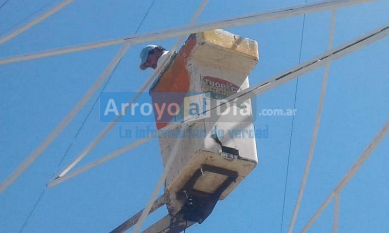 Personal de herrería, efectuaba reparaciones sobre algunos sectores del "arbolito" soldando imperfecciones puntuales,subrayando que sobre la estructura también de congregaron tareas en pintura.