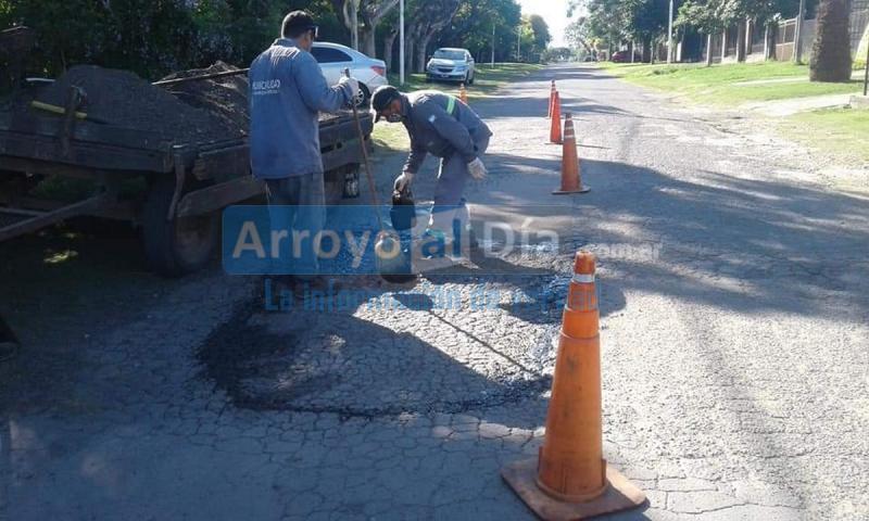 Una cuadrilla, desarrollaba trabajos de bacheo en frío sobre el barrio Puerto con el fin de mejorar la transitabilidad y cuidar nuestro patrimonio. De la misma manera, con maquinaria pesada, ejecutaban el emparejamiento de suelo y perfilado de la superficie sobre el ingreso al barrio Playa Hermosa, camino a Dreyfus.