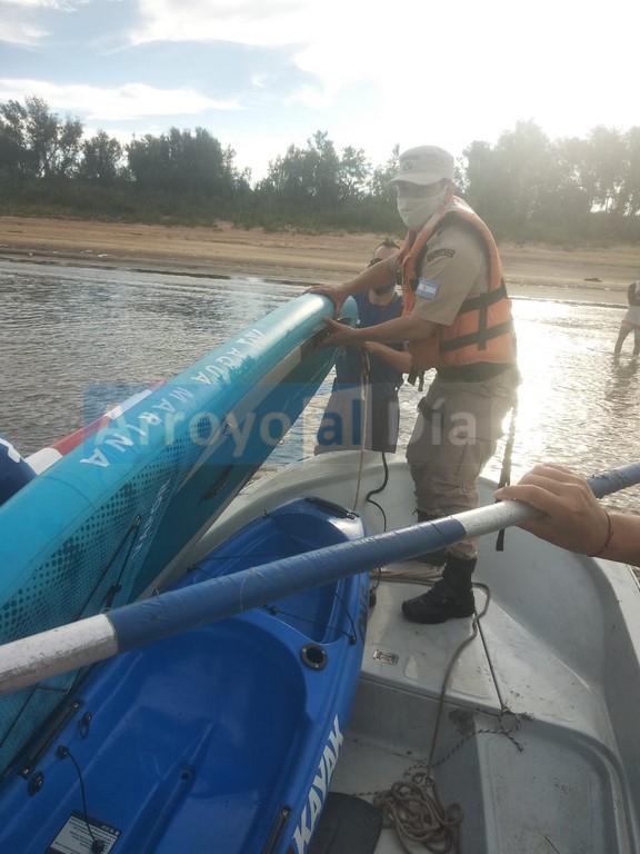 La emergencia comenzó cuando se recibió un llamado al 106 que alertaba que un hombre y una mujer se encontraban a la deriva a bordo de un kayak, a la altura del kilómetro 398 del Río Paraná.
