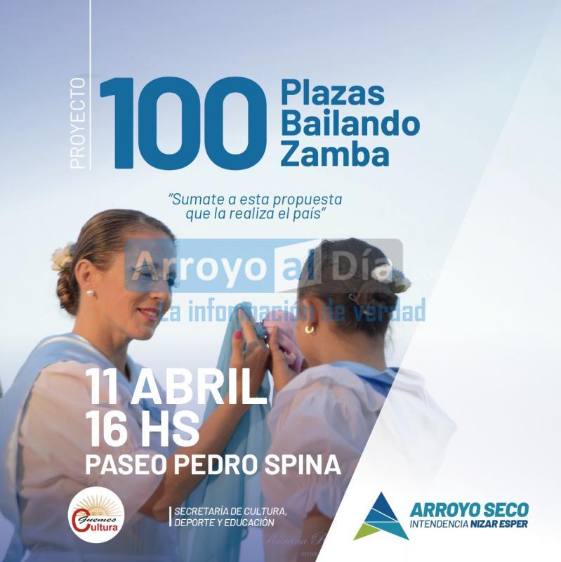 "100 Plazas Bailando Zamba", se desarrollará en nuestra ciudad el próximo 11 de abril desde las 16:00hs en el Boulevard Paseo Intendente Pedro Spina, al cual todos y todas están invitados, con el fin de bailar y dar conocer espacios públicos del país, propuesta que se realizará en toda la Argentina fomentando la cultura popular nacional.