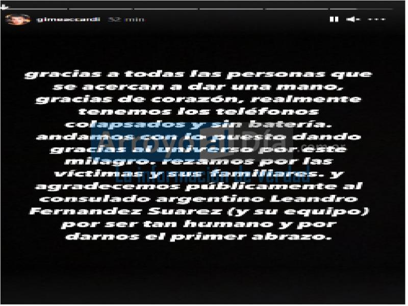 Y cerró: “Rezamos por las víctimas y sus familiares, y agradecemos públicamente al consulado argentino, a Leandro Fernández Suárez (y su equipo) por ser tan humano y por darnos el primer abrazo”.