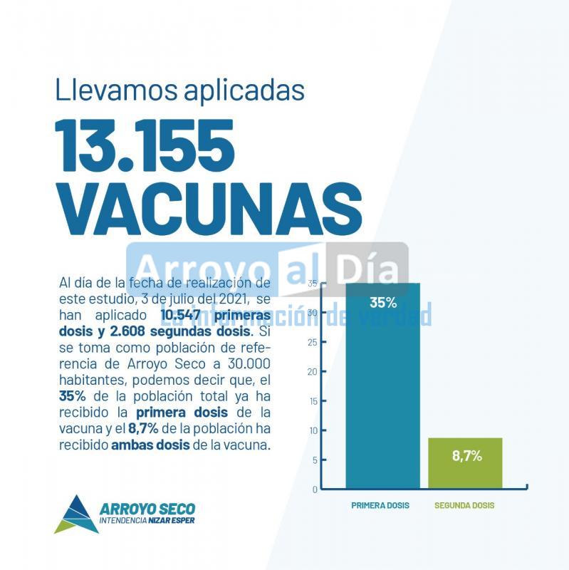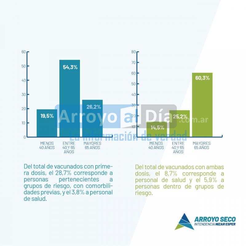 La cantidad de dosis y su distribución, representa el 35% de la población con la inoculación de una dosis, y el 8,7% con ambas dosis.