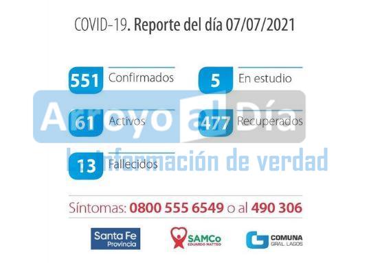 De esta manera, desde el comienzo de la pandemia, la localidad contabiliza 551 casos positivos, 61 activos, 477 recuperados y 13 fallecidos.