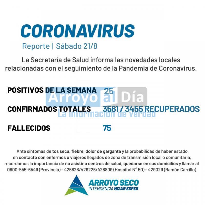 Por consiguiente, comunicamos que durante la semana hasta hoy, sábado 21 de agosto, se confirmó lo siguiente: